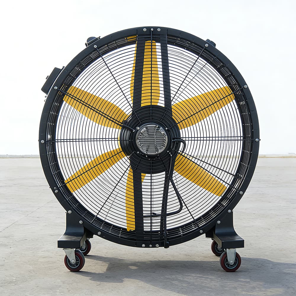 2. Portátil, fácil de mover con 4 ruedas, ventilador de pie, flexible para las condiciones del sitio.